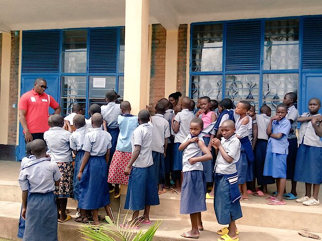 Aha ni kuri Site ya Kabirizi, imwe muri Site 6 zateguwe mu Ifasi y'Ikigo Nderabuzima cya Kwarwasa, kuri GS MATA ho mu Murenge wa Gacaca, mu Kagari ka Kabirizi, mu Mudugudu wa Mata, mu kiganiro n’abana b'abakobwa barimo gukingirwa Kanseri y'Inkondo y'Umura. Yakiriwe n'Umuyobozi w'iri Shuri, Bwana MPARIYIMANA Theophile.