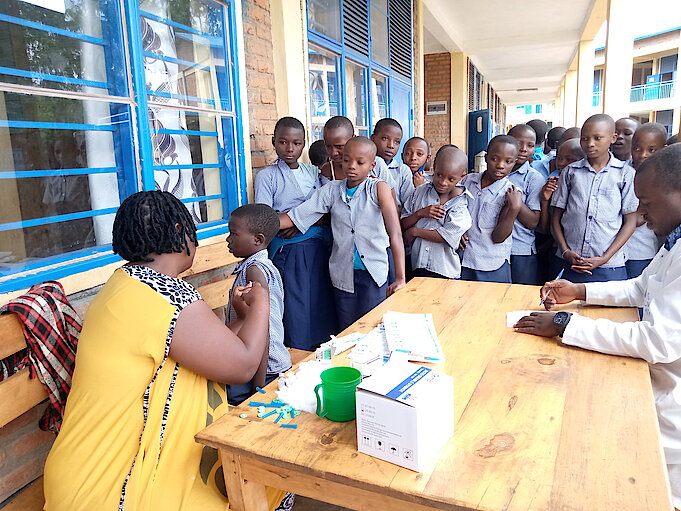 Basoje hatangwa ibinini by'inzoka n'ibya Vitamini ku Bana Bari Munsi y'Imyaka 5, kubapima ibiro, uburebure ndetse n'ikizigira, igikorwa cyabereye aho ku Biro by'akagari ari nabyo bikorerwamo n'Ivuriro ry'Ibanze rya Kabazungu, ku bufatanye n'Abajyanama b'Ubuzima.