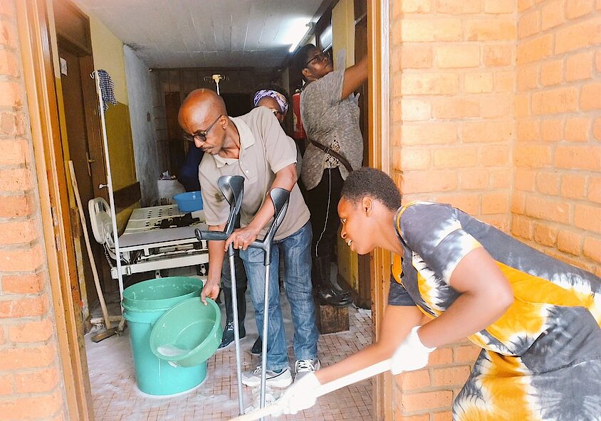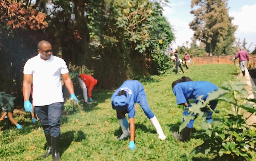 Iki gikorwa cyari kiyobowe n'Umuyobozi Mukuru w'Ibitaro, ubwe, Dr.MUHIRE Philbert, aho bamwe mu bakorera muri Serivisi zitandukanye barimo bakora gukora isuku imbere n'inyuma ya zimwe mu Nyubako z'Ibitaro, by’umwihariko mu Nzu Yakirirwamo Indembe “Urgence”, abandi babagara ubusitani.