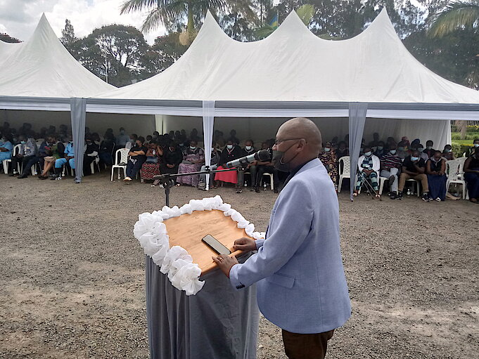 Atanga ikaze, n’agahinda kenshi, Umuyobozi Mukuru w'Ibitaro Bikuru yihanganishije Abarotse Jenoside anashimira abari bitabiriye umuhango muri aya magambo: “Nk’uko mubizi, ubusanzwe mu Bitaro hazwi nk’ahantu h’ikiramiro, nk’ahatanga ubuzima, bafatanyije n'Inama. Nyamara siko byagenze, kubera ko ahubwo, kubera ubukana Jenoside yakoranwe, ibitaro byakoreshejwe mu kuvutsa abantu ubuzima".
