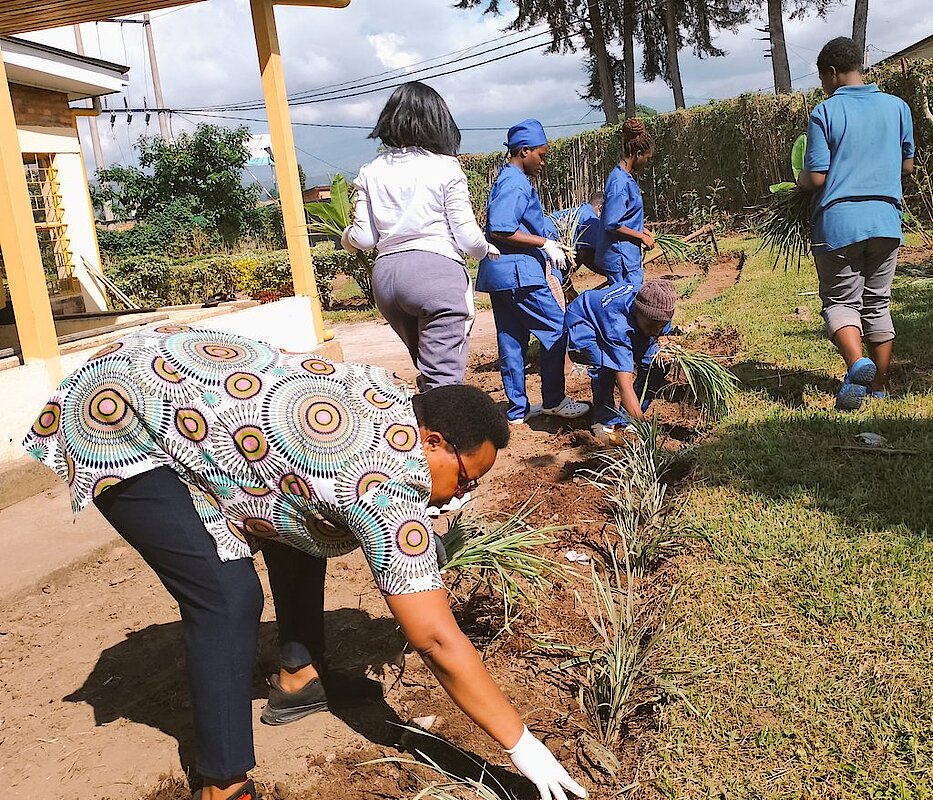 Muri iyi gahunda, mu rwego rwo gukomeza Kwimakaza Umuco w'Isuku mu Bitaro imbere no hanze yabyo, Abakorera muri ibi Bitaro bahuriye hamwe muhacumbikirwa Abaganga, aho bahurije hamwe imbaraga mu gukora isuku imbere mu nzu no hanze banatunganya ubusitani.