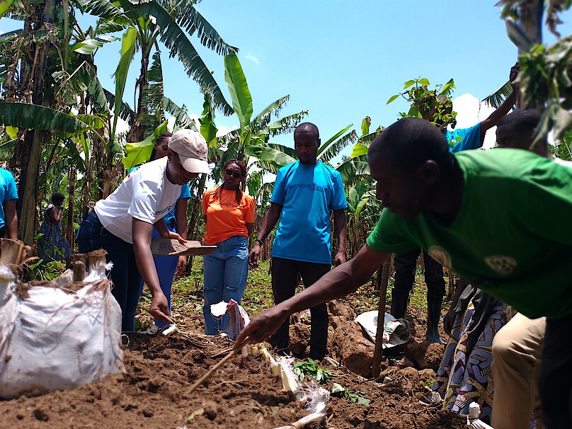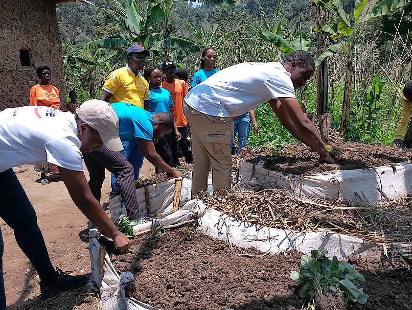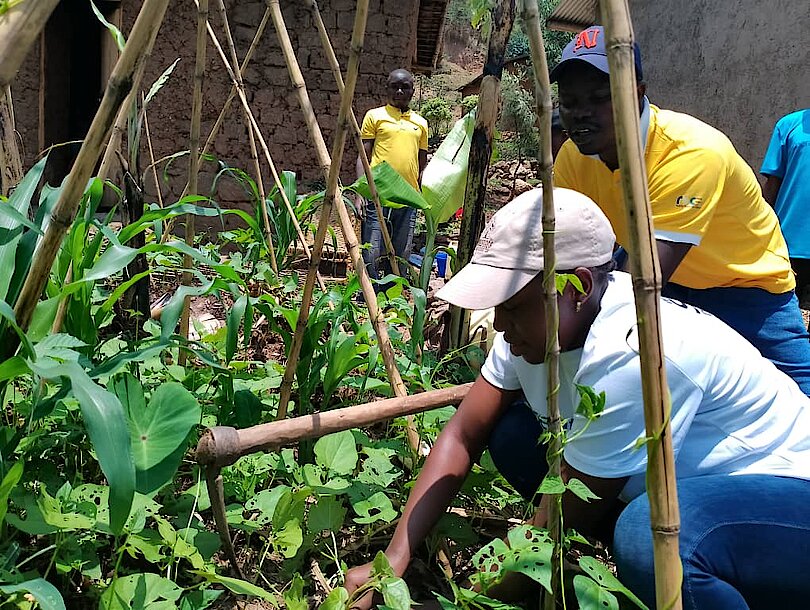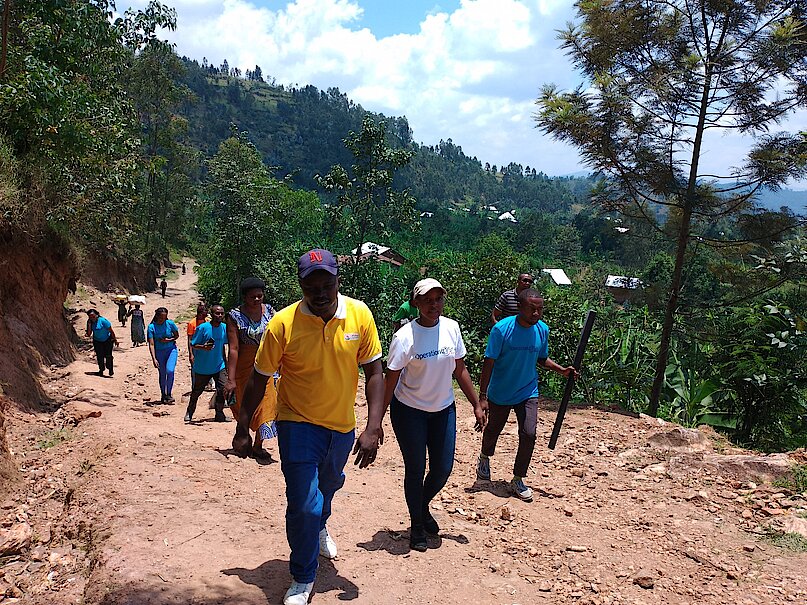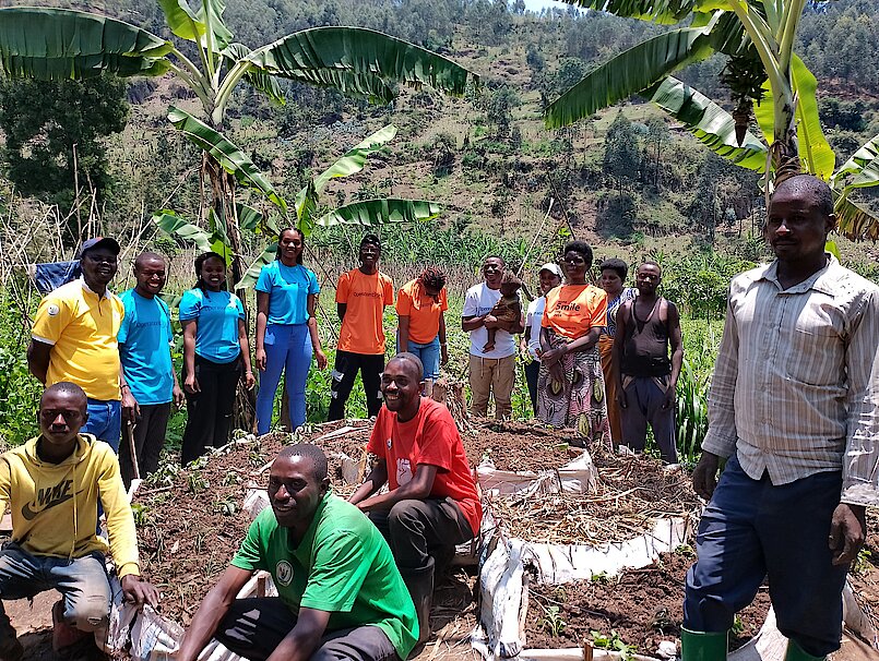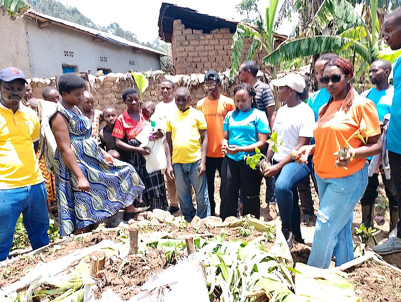 They were with Mr. BENIMANA Jean Sauveur (the Hospital Nutritionist), the Community Health Supervisor, the Head of Kabere Health Center, the Local Community Health Workers and Farmer Promoters.